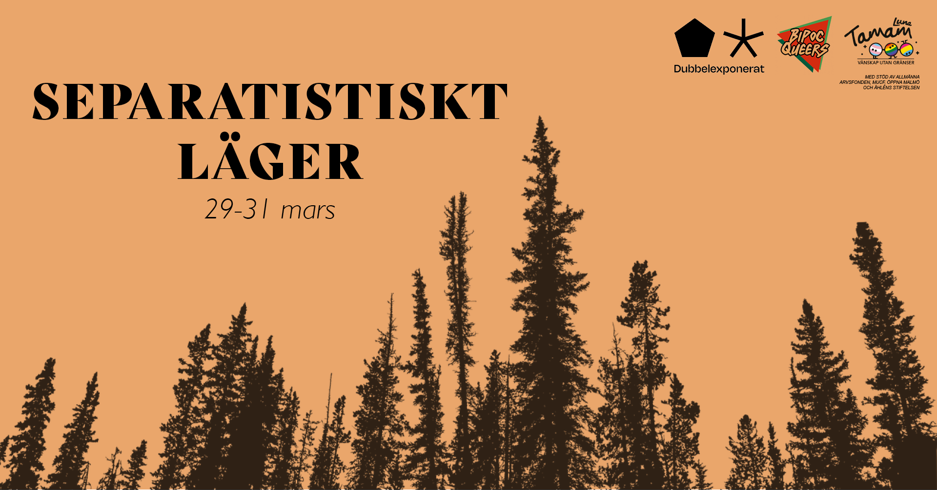 Lesbisk makt, Dubbelexponerat och Tamam Luna bjuder in er till ett separatistiskt läger för rasifierade* queers i slutet av mars! En retreat helg fylld av community, workshops och aktiviteter. Vi står för alla kostnader, resa, mat och material. Under lägret bjuds det på vegetarisk mat och fika. Vi kommer också att ha olika aktiviteter och workshops.